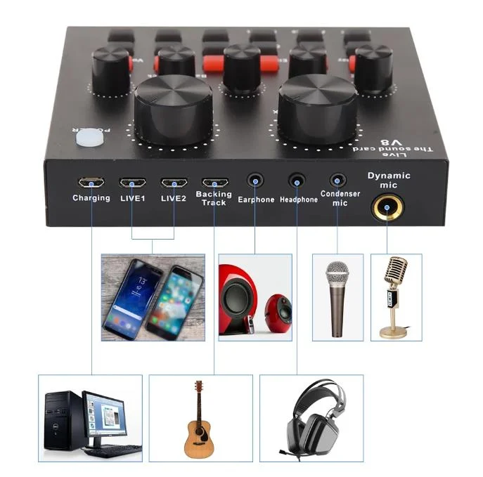Live Sound Card: dual DSP smart core for arithmetic processing of various complex sound effects, intelligent compatible with mobile phone, laptop, computer, smart television.